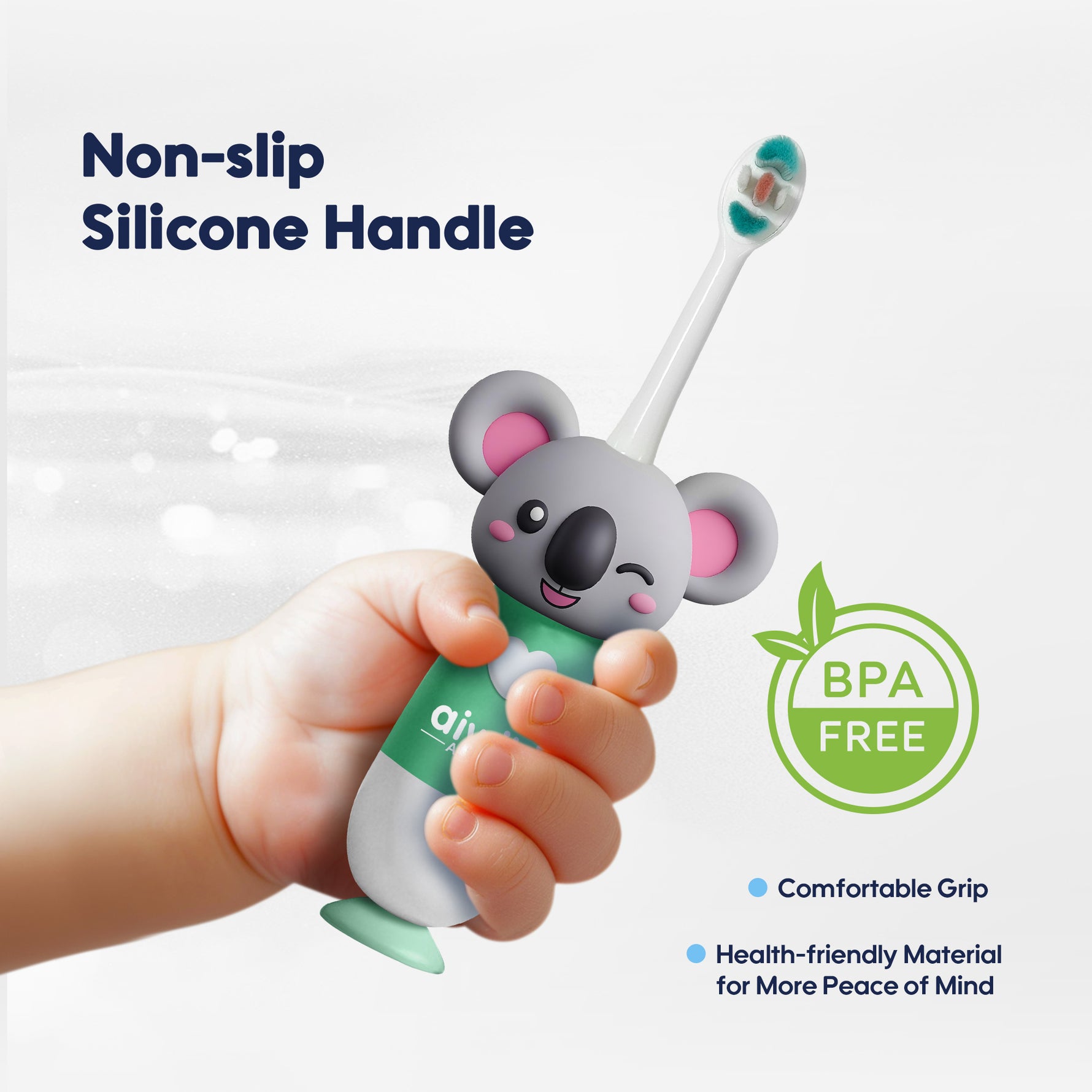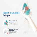 تمنع الشعيرات المرنة والنهايات المدورة التهيج، مما يجعل عملية التنظيف أكثر أمانا وراحة. تصميم الشعيرات المجمعة يسمح بغسل الفرشاة بسرعة، ويقاوم العفن والروائح، مما يبقي الفرشاة صحية بين الاستخدامات. مقبض السيليكون غير القابل للانزلاق يوفر قبضة آمنة لليدين الصغيرة، وهو مصنوع من مواد آمنة للأطفال وخالية من BPA بنسبة 100%.