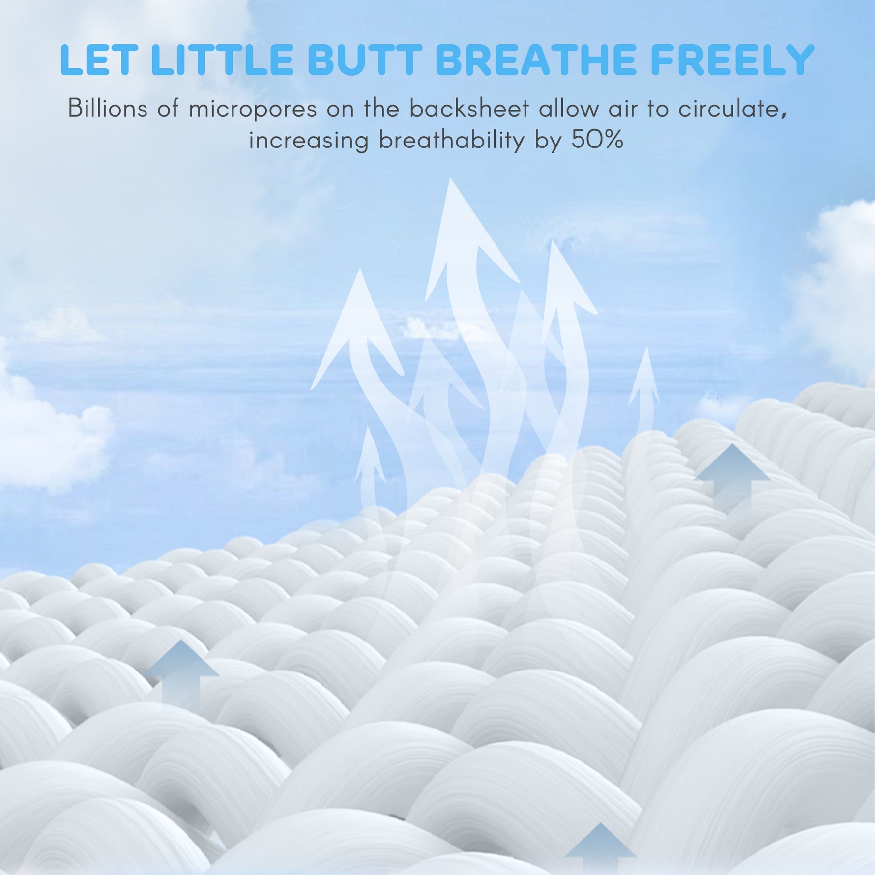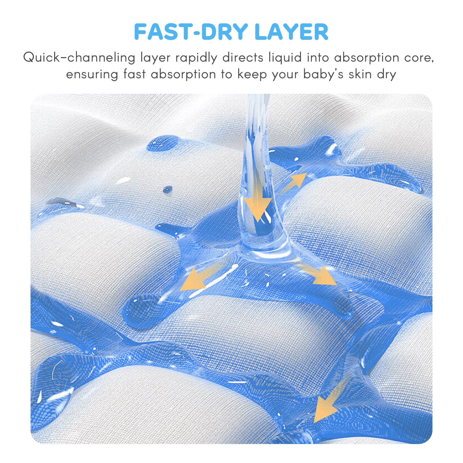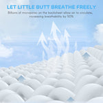 الطبقة الخارجية للحفاضة مصنوعة من قماش غير منسوج قابل للتنفس. يحتجز الرطوبة بينما يسمح للحرارة والرطوبة بالخروج. الرطوبة التي تشعر بها على الأرجح هي بسبب خروج الهواء الدافئ، الذي قد يحمل أيضا رائحة خفيفة من بول طفلك أو برازهم. يساعد هذا التصميم في الحفاظ على مؤخرة طفلك جافة ومريحة من خلال تقليل الشعور بالاختناق.